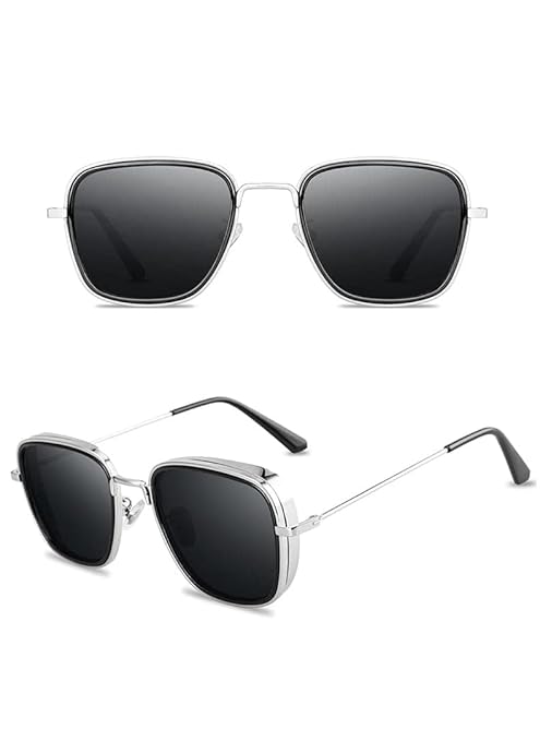 Carryminati Square Unisex Sunglasses, Silver Frame, Black Lens