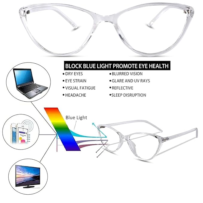 New Style Transparent Style Light Weight Cat eye Clear lens Zero Power Eye Strain Protection Glasses For Woman Small Size Frame Anti Glare & Blue Light Filter Glasses.